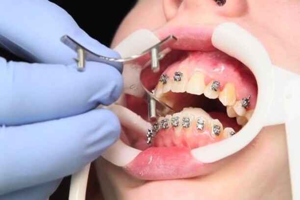 - تنظيف الأسنان بعد كل وجبة لمدة لا تقل عن دقيقتين باستخدام فرشاة تقويم ذات تصميم يسمح بالوصول أسفل السلك المعدني وتحريكها بزاوية مائلة نحو اللثة لإزالة الترسبات الدقيقة.