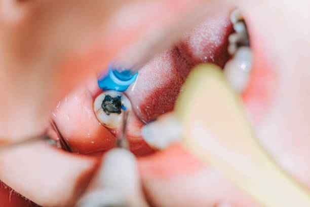 - تنظيف مبدئي للسن وإزالة التسوس الظاهر.